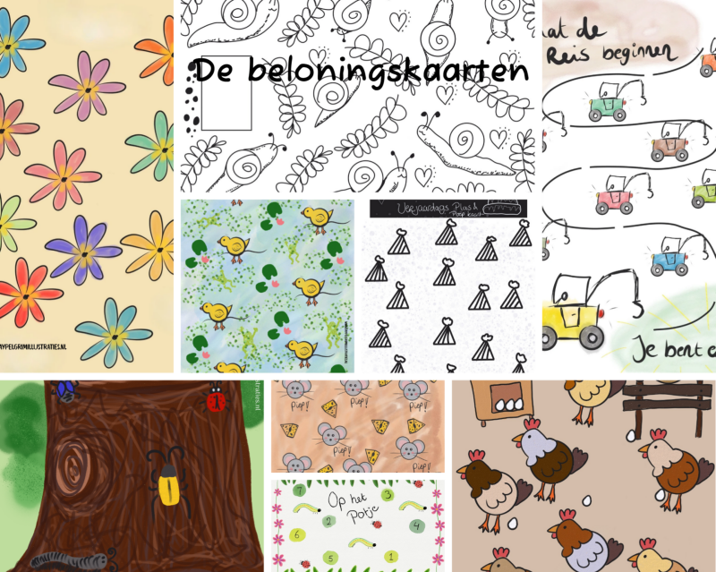 In de Potty Bag zit: 9 beloningskaarten (2 zijn gratis), stickervellen plas en poep, 10 grote vrolijke stickers en een cadeautje kun je er extra bij bestelling. Te vinden bij de pagina Cadeautjes.